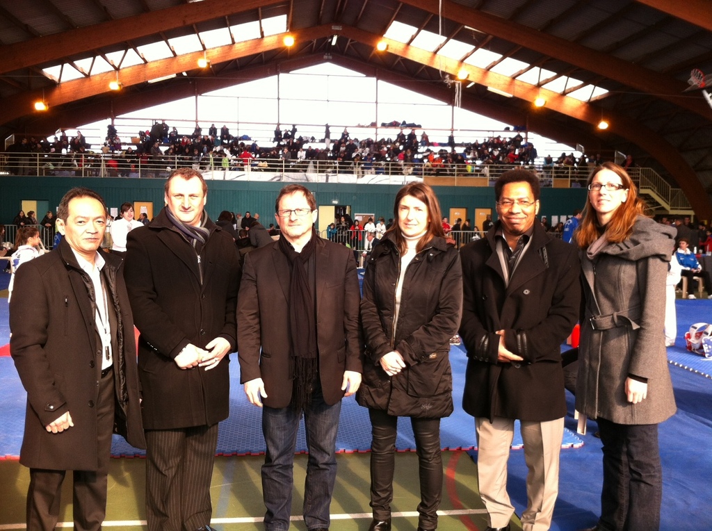 Photo : Roger Piarulli (Président de la FFTDA) présent sur le championnat mutualisé Aquitaine/Midi-Pyrénées, en présence de Carole Laforêt, Vipaul Huo Yung Kaï (Présidente et DTR de la ligue Midi-Pyrénées), Bruno Volpato (Président de la ligue Aquitaine), Robert Vincent (Responsable juridique de la FFTDA), et la CTN référente des 2 ligues, Carine Zelmanovitch.