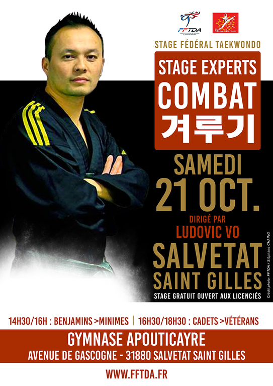 Le samedi 21 octobre 2017 à La Salvetat Saint Gilles (31), la ligue Occitanie accueille le stage fédéral expert combat avec l’entraîneur national, Ludovic VO.
