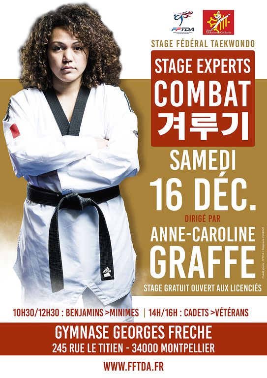 La ligue Occitanie et la FFTDA organisent le samedi 16 décembre 2017 à Montpellier, un stage expert sur le thème du combat, encadré par Anne-Caroline GRAFFE (Championne du Monde et d’Europe, médaillée Olympique)