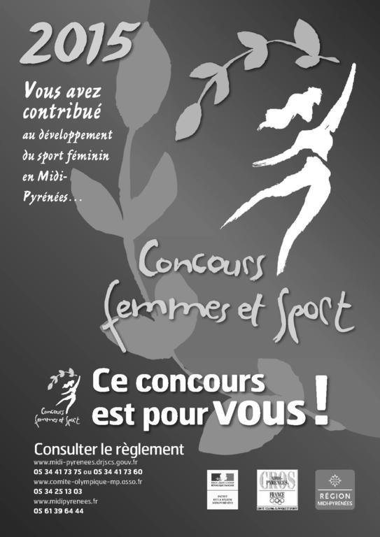 La Direction Régionale de la Jeunesse, des Sports et de la Cohésion Sociale de Midi-Pyrénées, le Comité Régional Olympique et Sportif Midi-Pyrénées et la Région Midi-Pyrénées ont décidé de reconduire le concours " Femmes et Sport " en 2015.