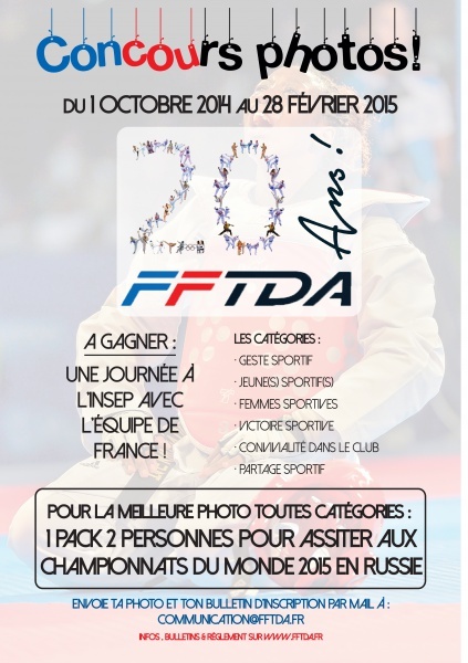 - en fichier joint par mail à l’adresse avec accusé réception : communication@fftda.fr et objet du message : concours photo