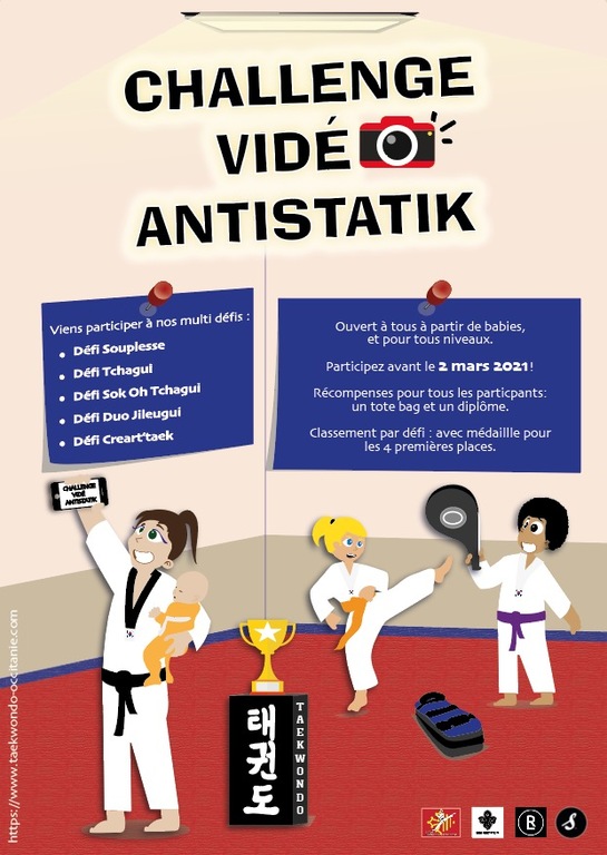 Suite au succès du "Challenge Noël Vidéo Poumsé", la ligue a le plaisir de vous proposer une nouvelle compétition avec le : « CHALLENGE VIDÉO ANTISTATIK Multi- défis» ouvert à tous, à partir de la catégorie Babies, et pour tous niveaux.