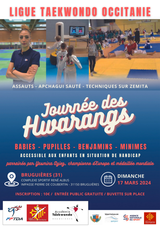 La Ligue de taekwondo Occitanie organise la Journée des Hwarangs ce dimanche 17 mars 2024 à Bruguières (complexe sportif René Albus).